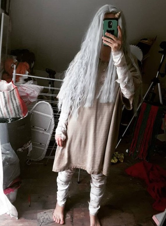 Amazon Com Ipld Eri Wig Anime Eri Cosplay Costume Long Curly Blue Gray Hair Clothing Shoes Jewelry